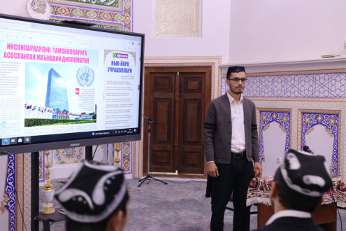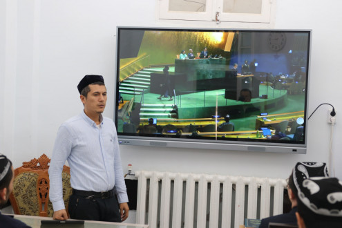 Бухоро шаҳридаги Мир Араб ўрта махсус ислом таълим муассасаси талабалари учун муҳим сиёсий-маърифий тадбир – “Ўзбекистон Республикаси Президенти Шавкат Мирзиёевнинг БМТ Бош Ассамблеяси 80-сессиясидаги нутқи таҳлили” мавзусида давра суҳбати ташкил этилди.
